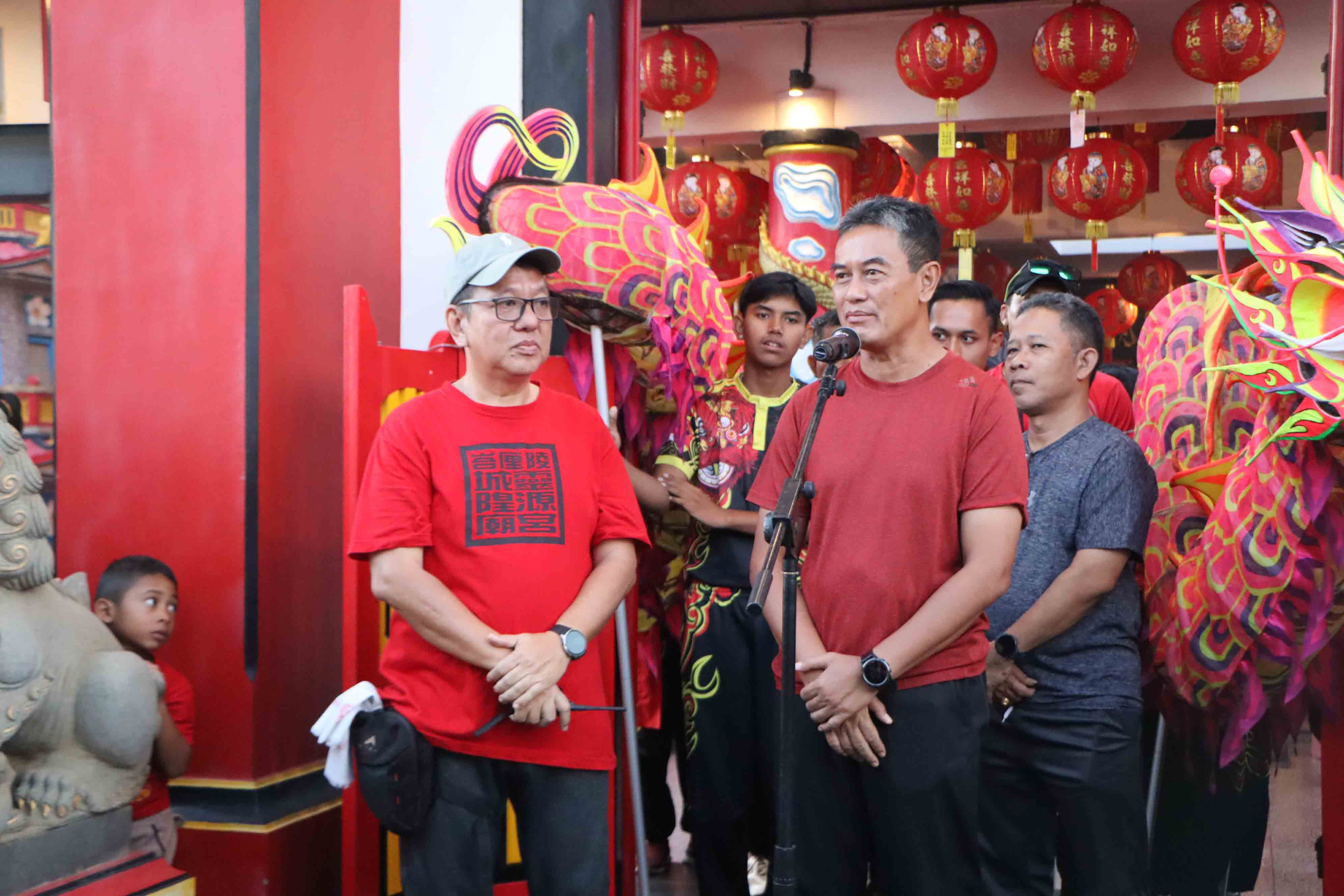 Wakil Bupati Buleleng Gede Supriatna mengikuti jalan santai rangkaian perayaan Hari Bertahtanya Yang Mulia Kongco Seng Hong Ya ke-117 yang diselenggarakan di Tempat Ibadah Tri Dharma (TITD) Seng Hong Bio, Kampung Baru, Singaraja, Minggu (12/4).